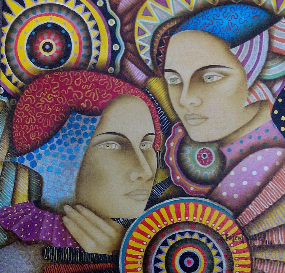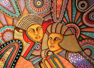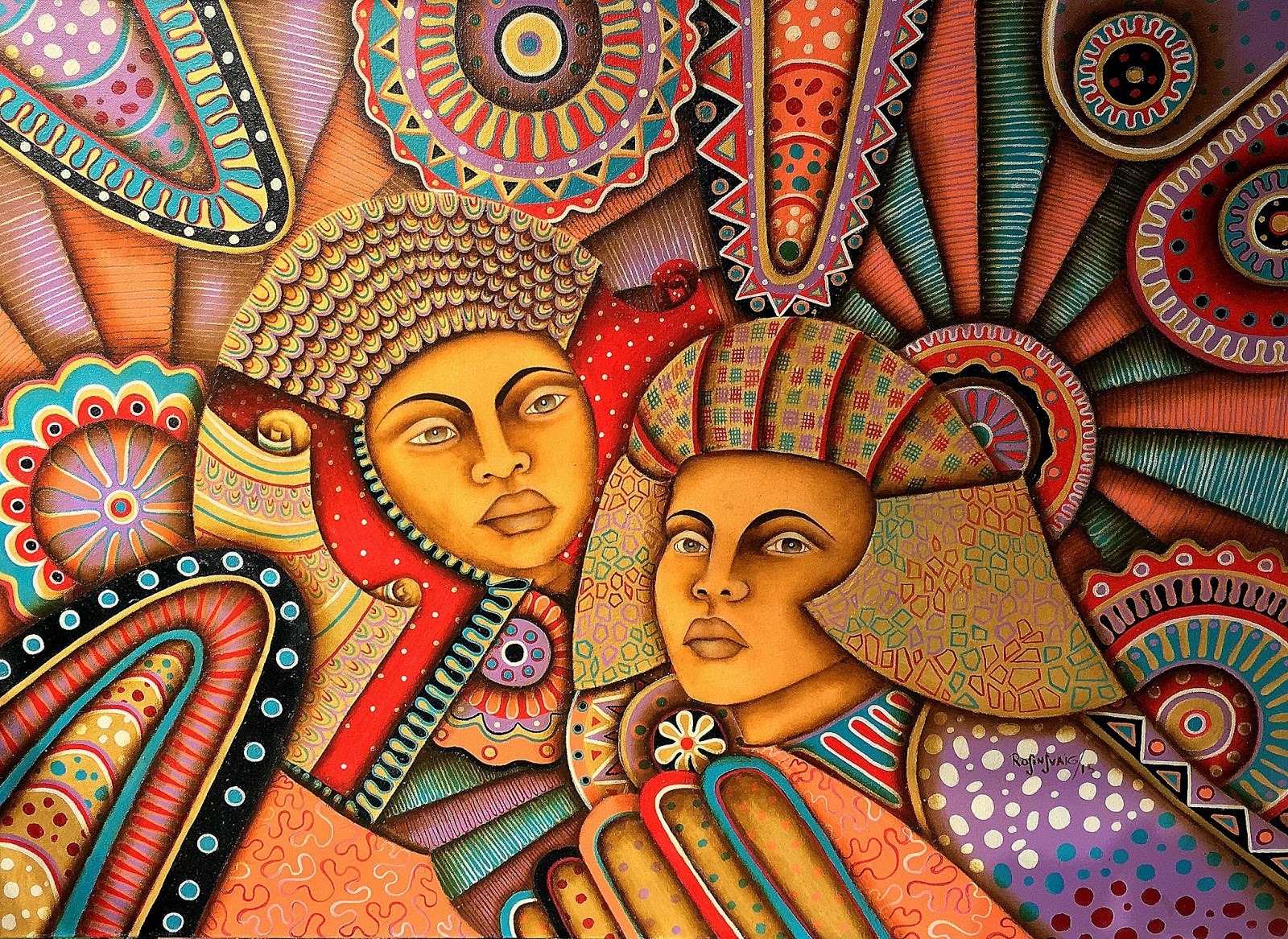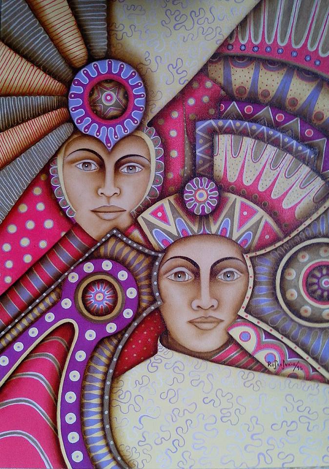 obra llena de colorido, y esas mujeres toda ojos ....profundos...Inquisitivos...Inocentes
